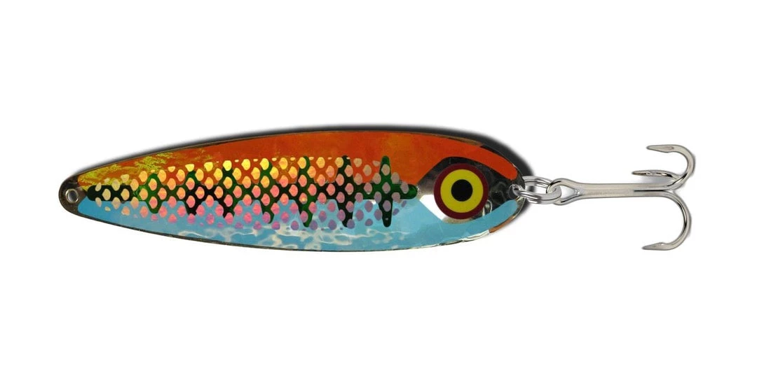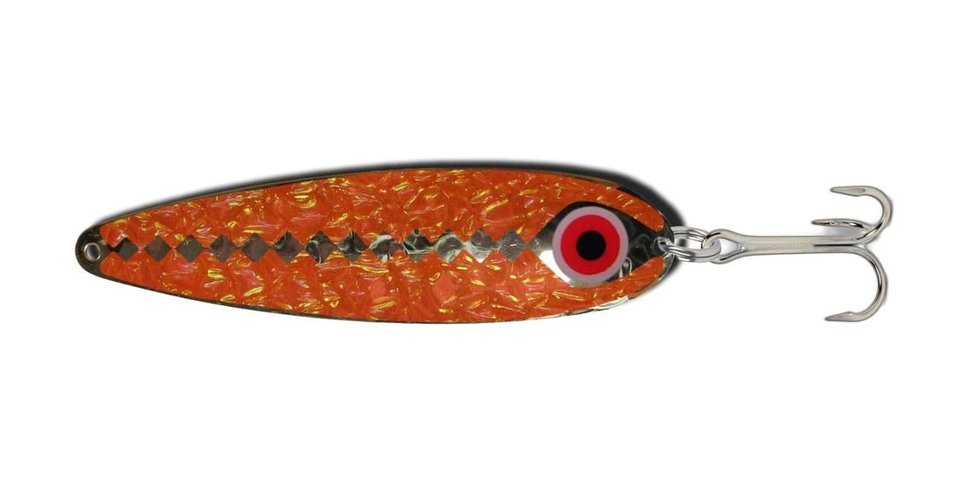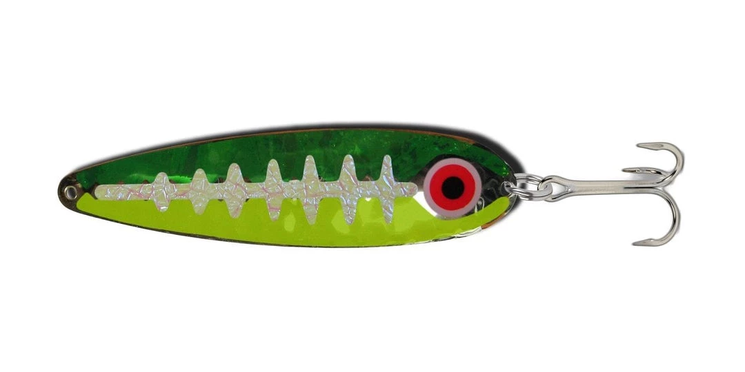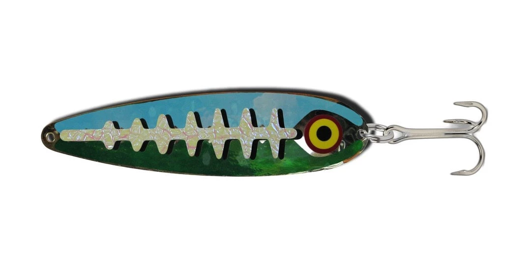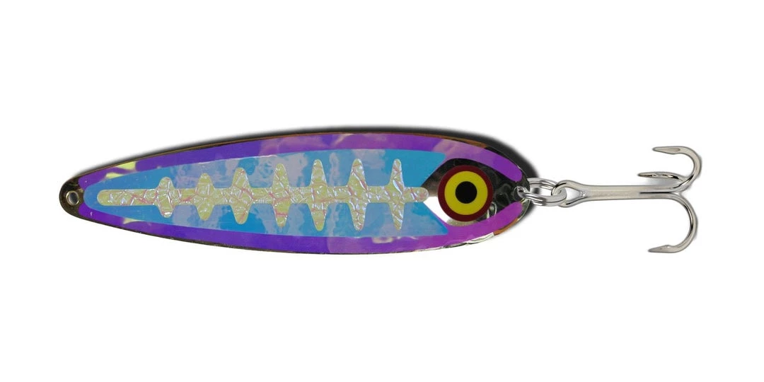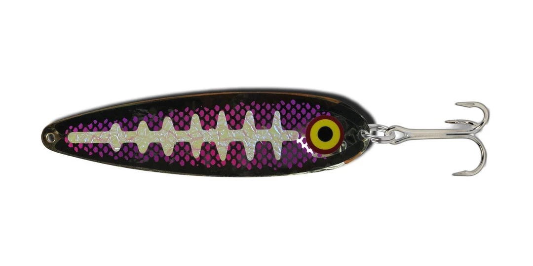 Each Pro King Magnum Spoon is finished with a high-quality silver plating for extra flash. Choose from hundreds of proven color patterns. The biggest trophy Salmon and Trout is no match for the Pro King Magnum Spoon paired with a #1 VMC treble hook.