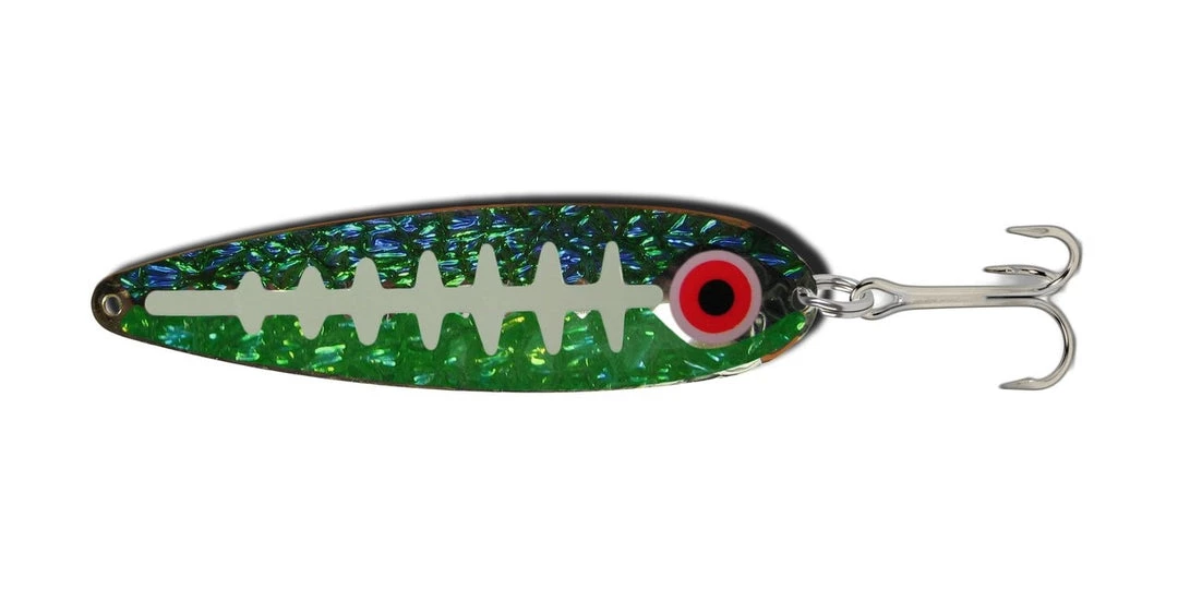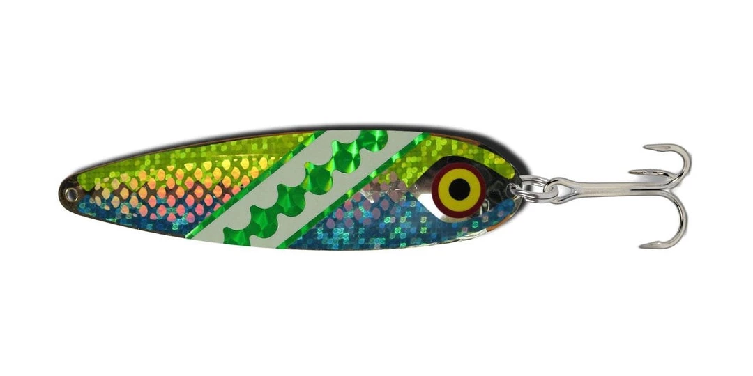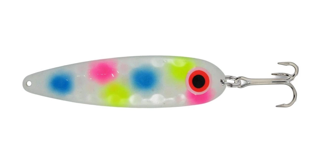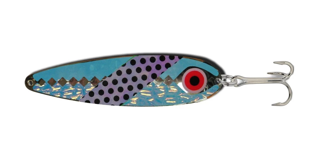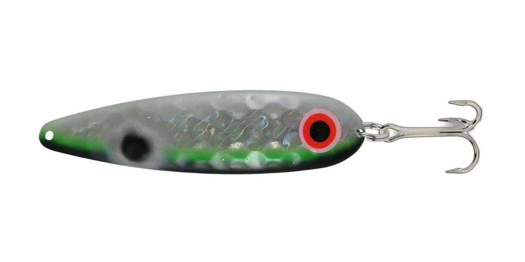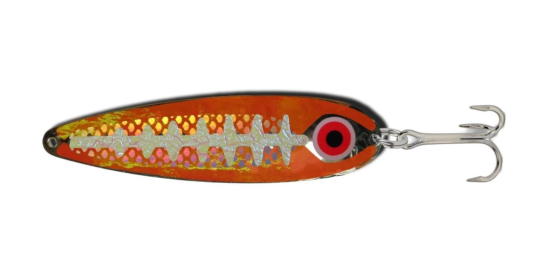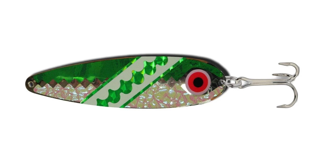 Each Pro King Magnum Spoon is finished with a high-quality silver plating for extra flash. Choose from hundreds of proven color patterns. The biggest trophy Salmon and Trout is no match for the Pro King Magnum Spoon paired with a #1 VMC treble hook.