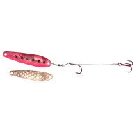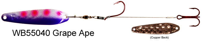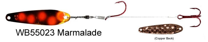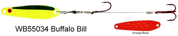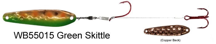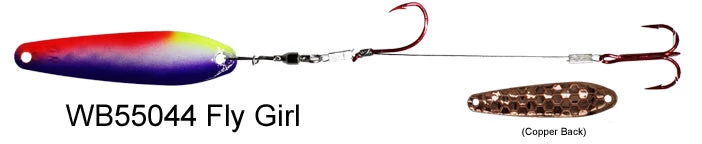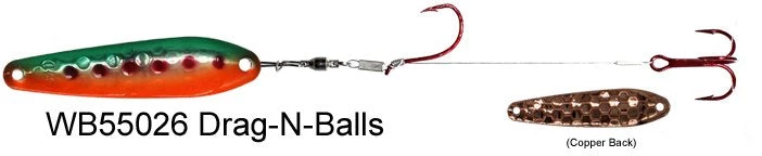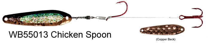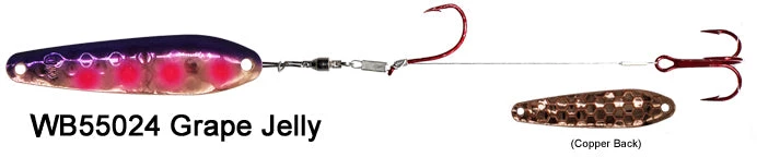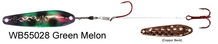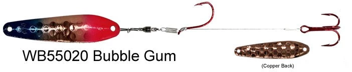 Dreamweaver Wormburners combine a Dreamweaver WD Series trolling spoon with standard wire crawler harness giving the angler a whole new bait design that fish have never seen before. Unlike other crawler harnesses that have to be trolled at very slow speeds, the Wormburner allows you to troll up to 4 mph! Because of this, the Wormburner can be trolled with crank and stick baits and spoons, baits that traditionally are trolled at faster speeds. Wormburner live bait harnesses features a ball bearing swivel and a single size two red octopus hook with a size four red treble hook stinger.