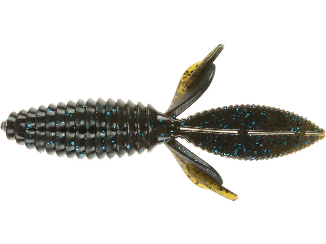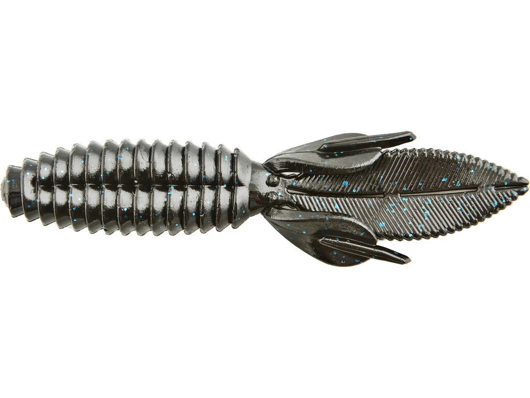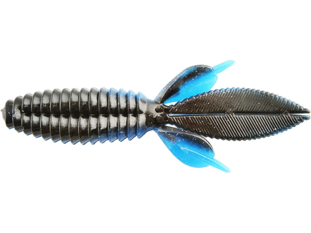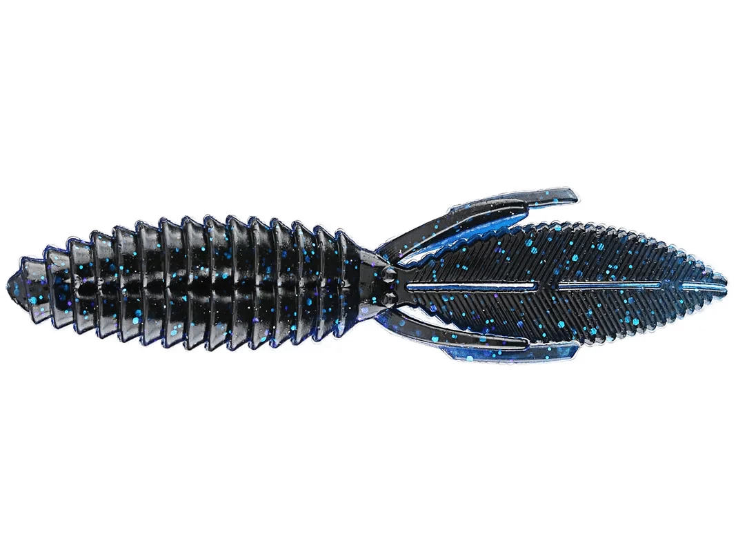 The body of the Sweet Beaver features forward facing ribs that create lots of pressure waves that let bass know something is moving and offers bass a texture that they seem to like when they inhale the lure. The centerline is recessed for better hook penetration but the ‘nose’ of the lure is thick to hold your hook without tearing on every fish. The long, flat, beaver tail is textured on the flat surfaces and along the edge, and it’s splitable so you can have a twin tail look, an attention to detail not seen in most soft plastic lures. The Sweet Beaver also has additional tails set at 90 degrees to the beaver tail for fish attracting movement no matter which way the lure is moved. 10 pack