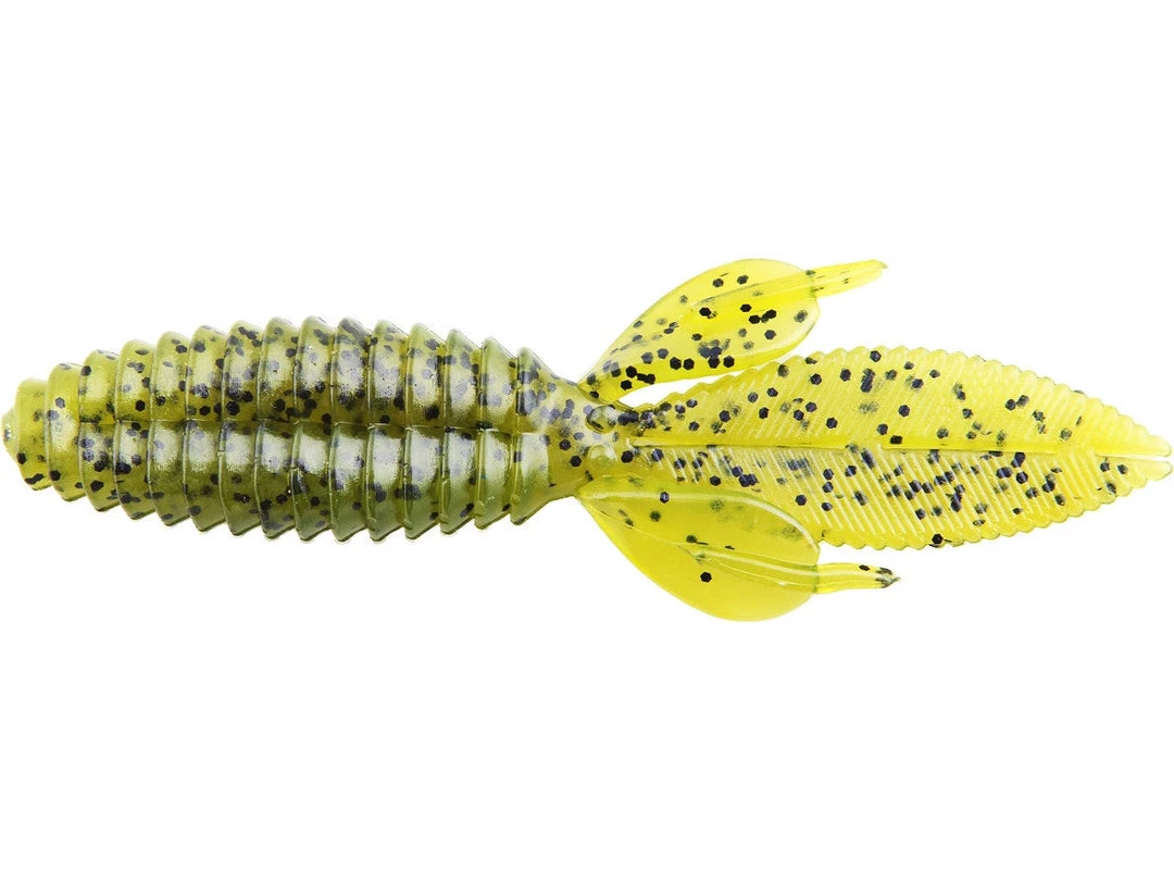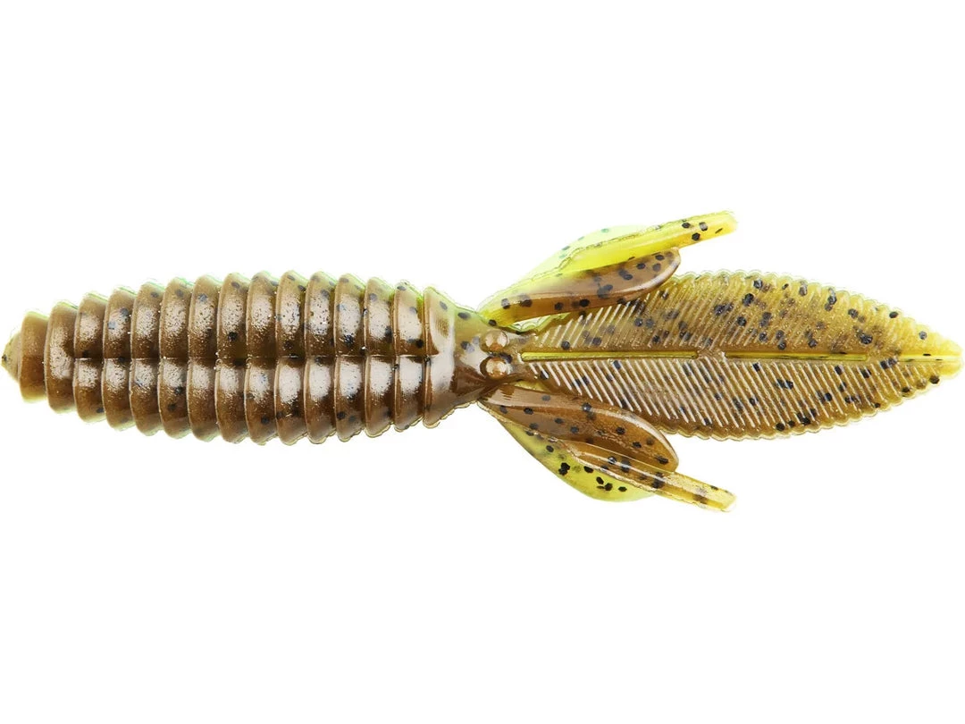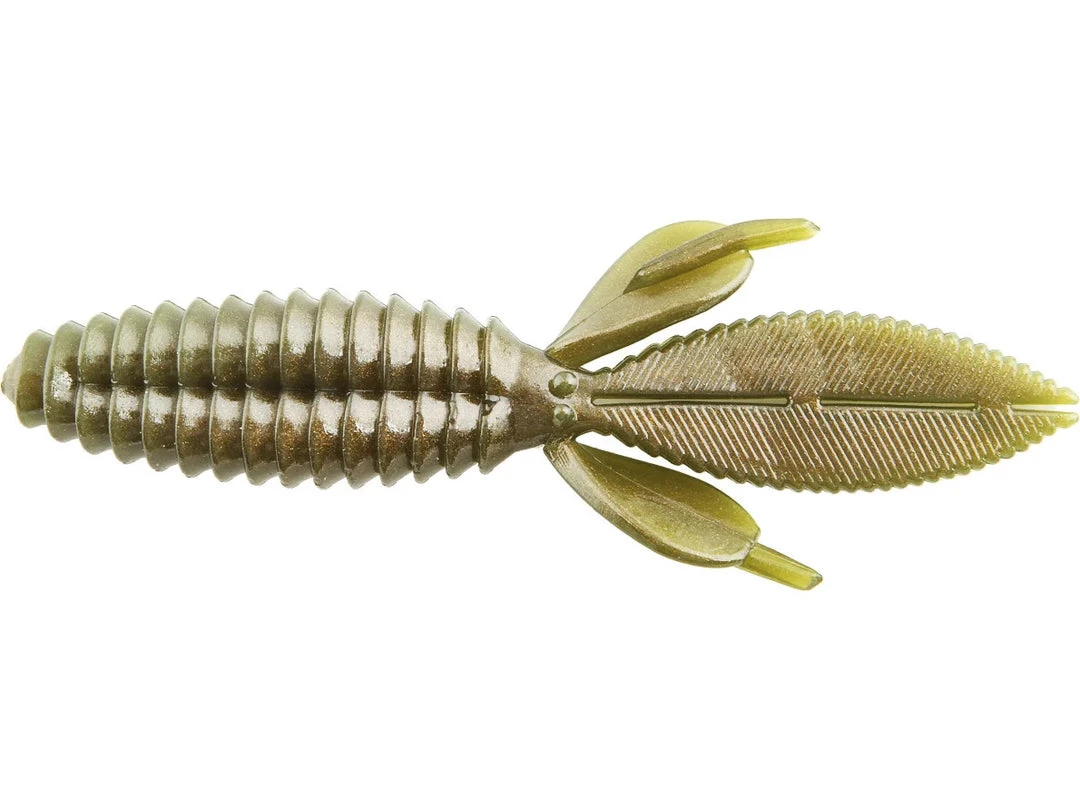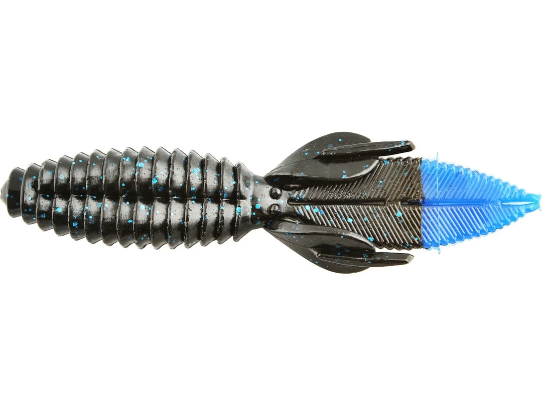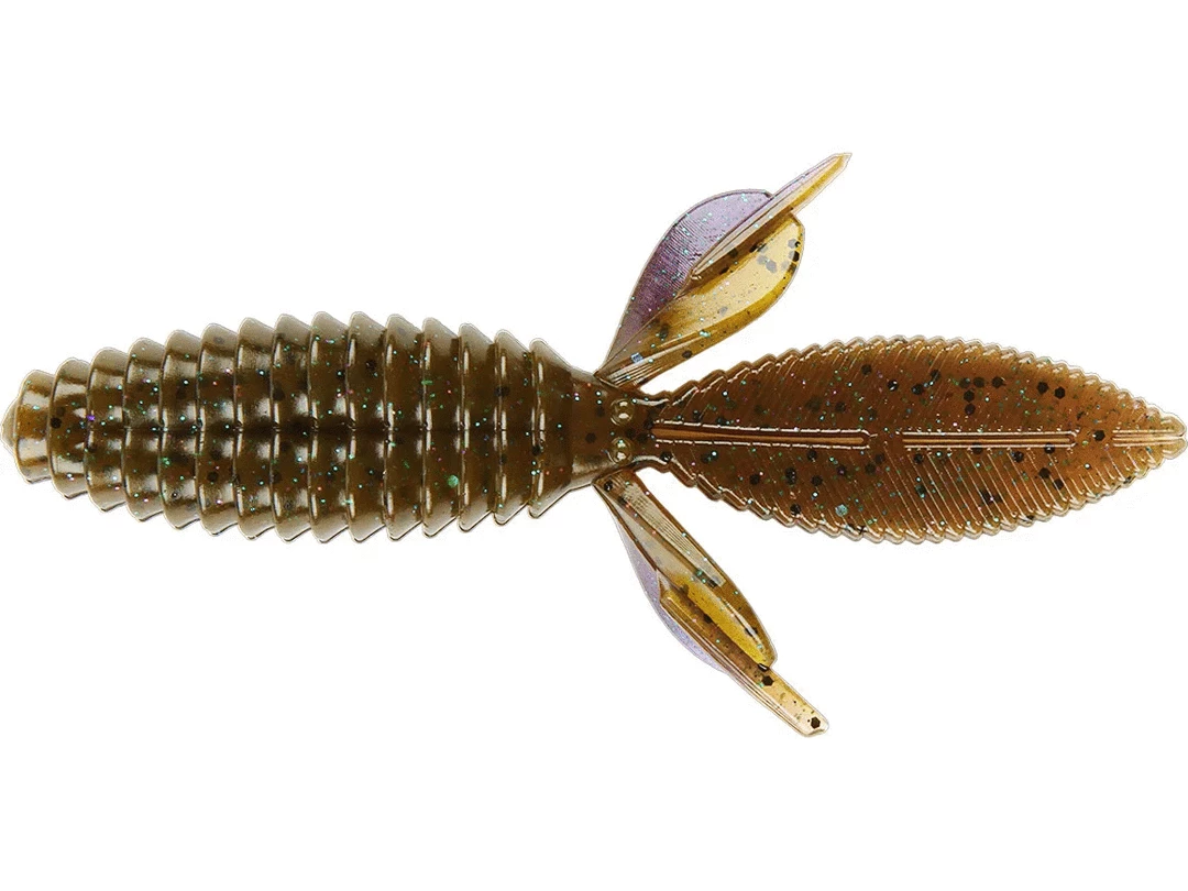The body of the Sweet Beaver features forward facing ribs that create lots of pressure waves that let bass know something is moving and offers bass a texture that they seem to like when they inhale the lure. The centerline is recessed for better hook penetration but the ‘nose’ of the lure is thick to hold your hook without tearing on every fish. The long, flat, beaver tail is textured on the flat surfaces and along the edge, and it’s splitable so you can have a twin tail look, an attention to detail not seen in most soft plastic lures. The Sweet Beaver also has additional tails set at 90 degrees to the beaver tail for fish attracting movement no matter which way the lure is moved. 10 pack