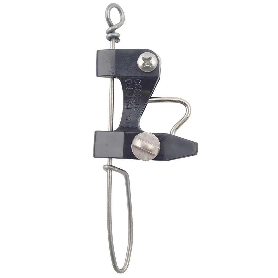 The Black’s Downrigger Release Clip is made with the “Ring & Snap” attaching bar for the ease and convenience of the angler to simply snap the clip in place on a downrigger. This release adapts for use in slider and stacking situations on the downrigger. It has an adjustable tension screw.